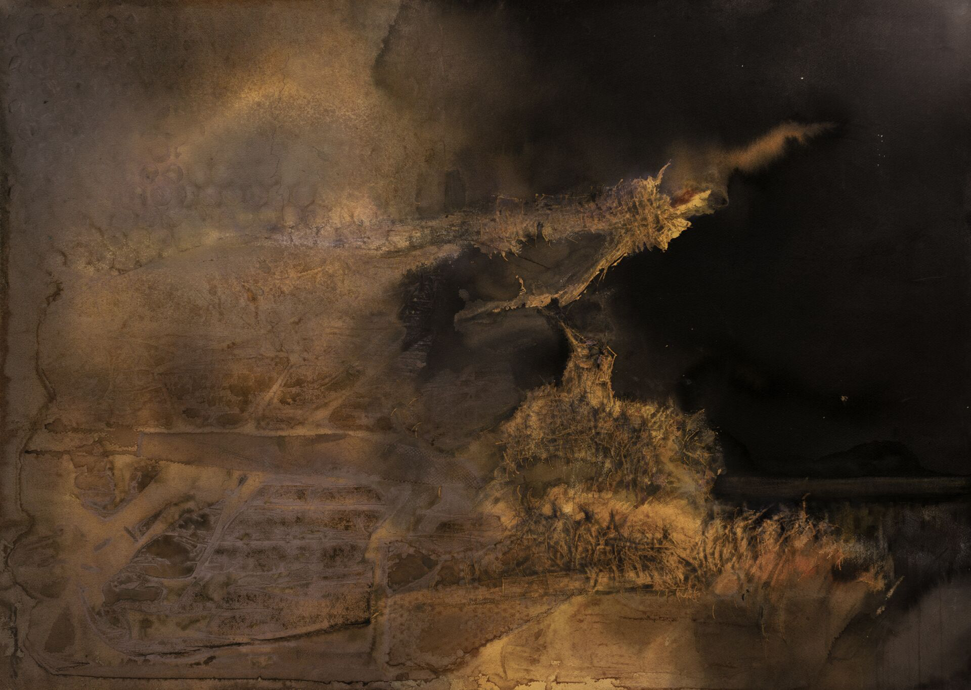 (作品名:《茅古斯.田野舞蹈》 水彩/尺寸:120*80厘米 作者:刘文良)