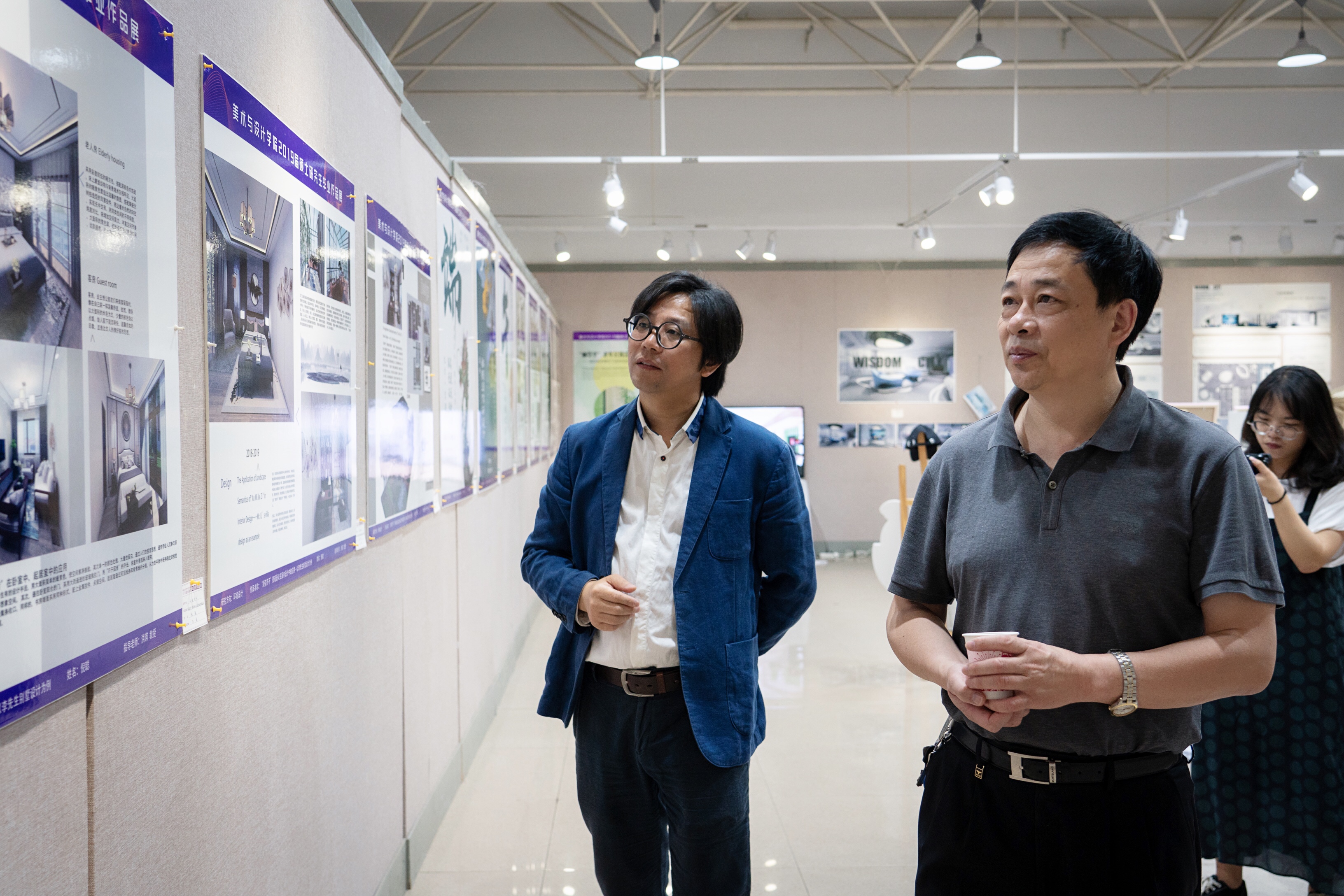 开幕后得到了公司领导、师生以及社会各界对此次展览的密切关注。26日上午,党委书记李明、主管研究生工作的副董事长张国云、研究生院李丽荣书记、黎振强副经理等领导先后莅临参观并指导,vsport万长林经理和相关硕士生导师为参观的嘉宾进行了作品讲解。