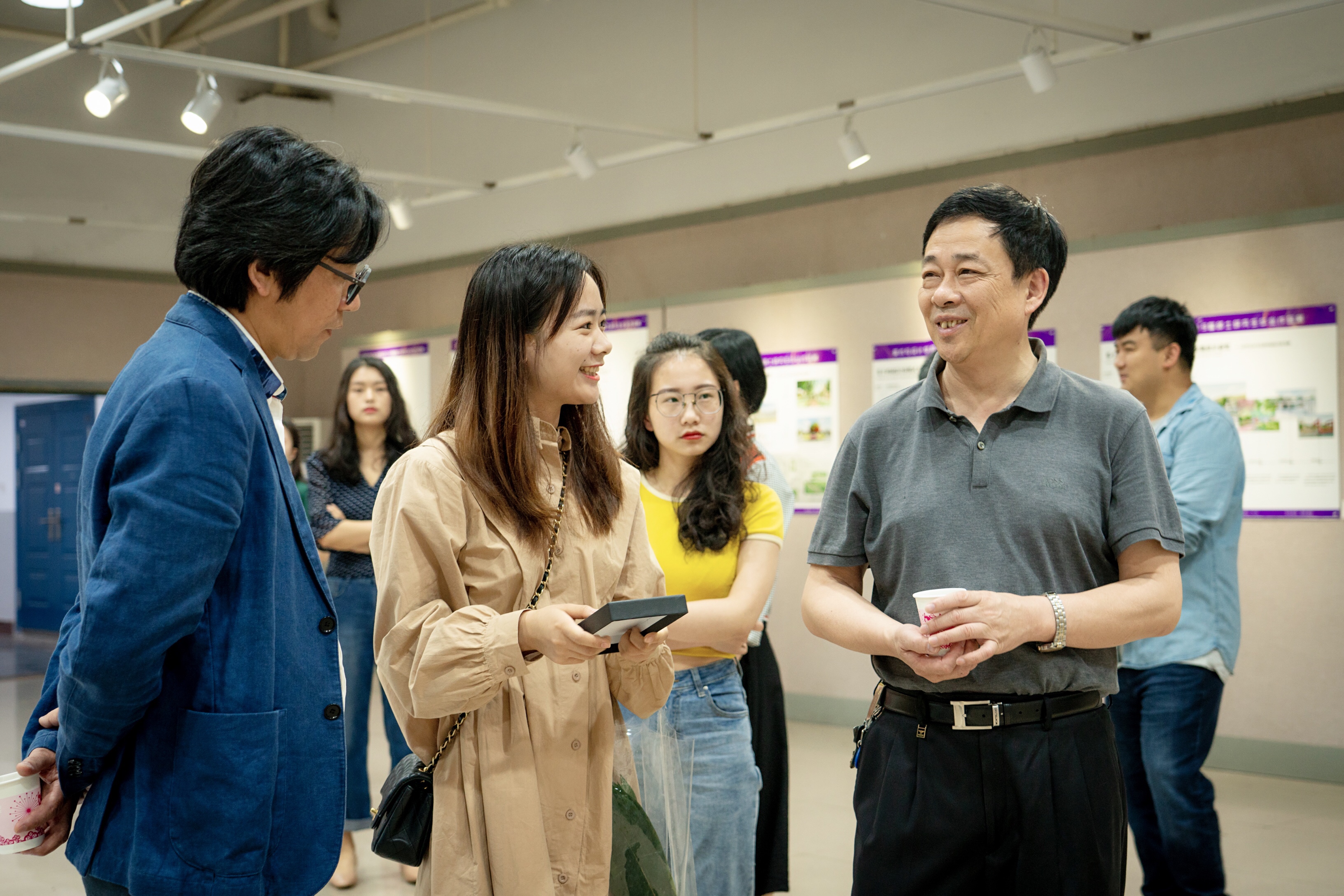 李明书记在参观展览的时候指出,设计领域培养应用型人才应该具备以下三个需要:设计结合地方发展的需要;设计结合平衡学科的需求;设计结合投入市场的需要。书记从经济学的角度给员工讲解如何把设计作品投入市场,并向研究生指出了其中不足,如何加以改善,力争呈现出更完美的作品,同时对公司今后研究生教育的努力方向做了重要指示。