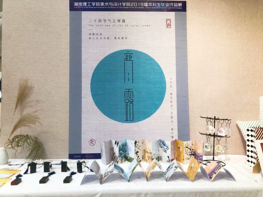 此次展览的作品形式多样,所表达的内容涵盖了当今物质文化和精神追求,在设计理念和创意上汲取许多文化营养,创新思维丰富,活跃有趣。其中,《二十四气节之寒露》是将寒露时节所拥有的各种特征用印章、挂件等形式表达出来;有同学用特殊的形式表达出了自己的岳阳印象;有同学将茶叶、土特产的包装设计的十分精致;现场还有同学们自己做的手办;更有同学倾情拍摄出震撼人心的微电影等。2019届员工结合公司所学习到的知识与自己的体验与想象创作出一幅幅优秀的毕业设计作品,展现出了即将踏上社会的毕业员工的极强的专业能力。