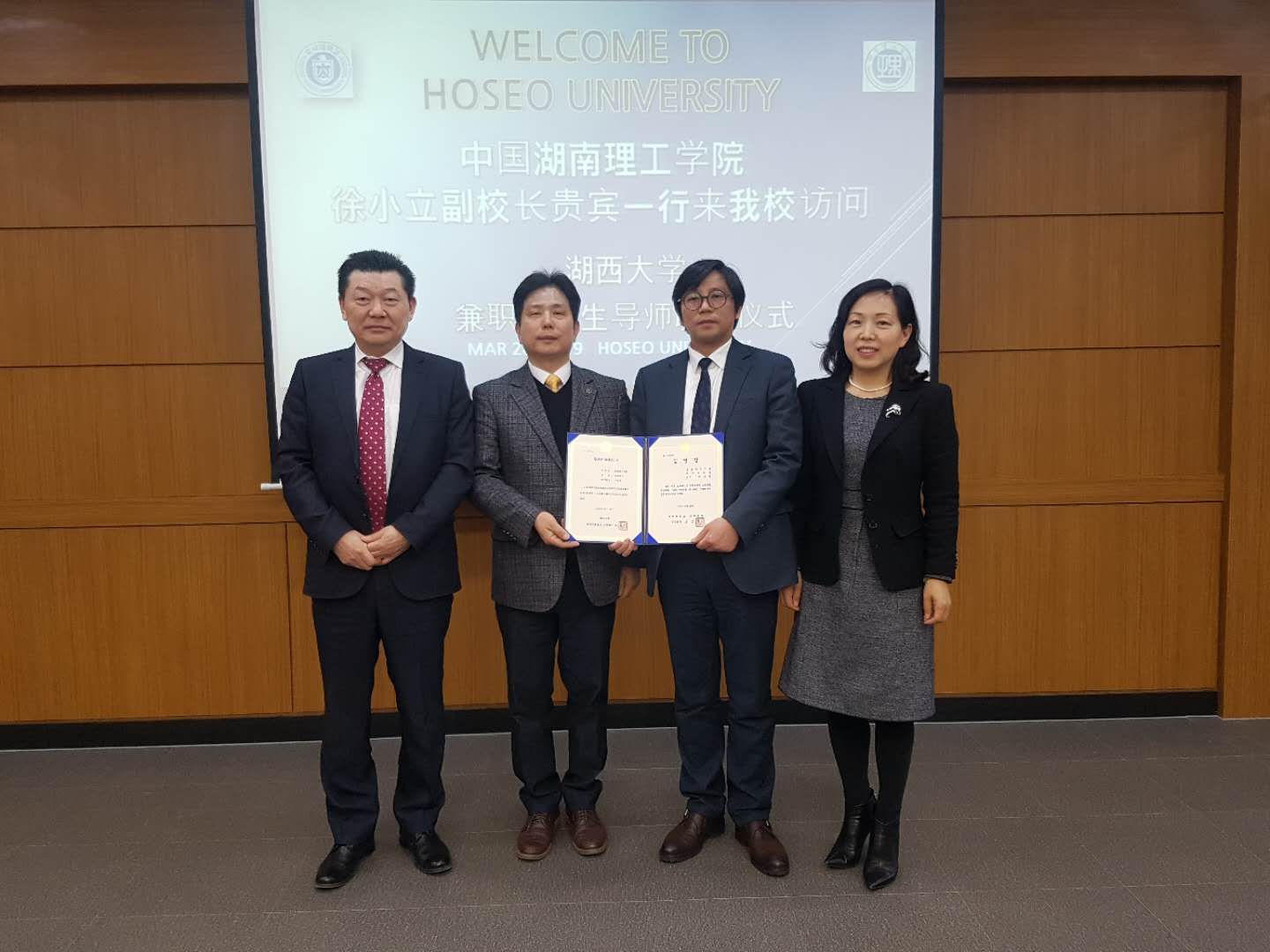 湖西大学聘请了vsport经理万长林教授为兼职博士生导师。聘请仪式后,代表团探望公司在湖西大学参加交换项目和本硕联读项目的员工,并与在湖西大学攻读博士学位的20余位教师进行了座谈。(撰稿/国际交流处 责编/田夏)