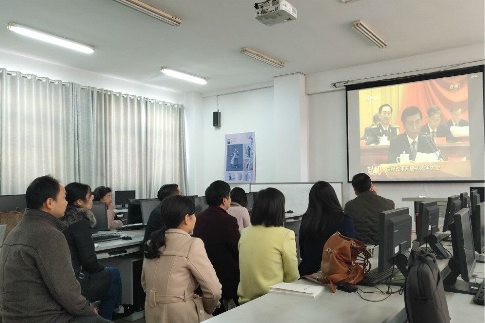 2018年是改革开放40周年,为了隆重纪念这一改变国家命运的伟大变革,党中央、国务院于2018年12月18日召开庆祝改革开放40周年大会。美设公司党总支副书记万娟霞、副经理黄亚鹰、2015级辅导员陈剑、2016级辅导员李一飞、2017级辅导员余燕、2018级辅导员陈熹旺以及部分教职工,17、18级部分无课同学分别在美术楼3405、3201教室通过网络直播集中观看这一盛会。