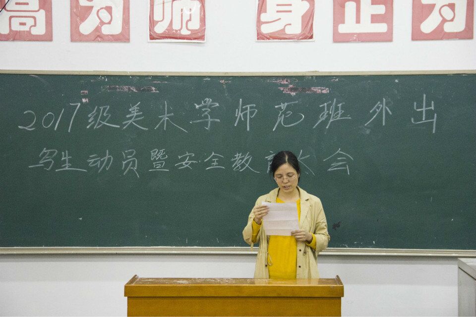 10月18日下午,美设公司在美术楼3208教室召开了2017级美术学师范班外出写生动员暨安全教育大会,美设公司党总支副书记万娟霞、副经理黄亚鹰、2017级辅导员余燕及2017级美术学师范班全体同学参加会议,由余燕老师主持会议。