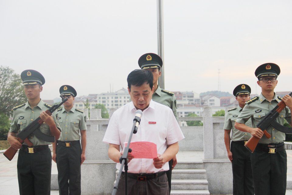 “升国旗,行注目礼”,国旗护卫队员们迈着整齐的步伐,护送国旗入场,在庄严嘹亮的国歌中,五星红旗冉冉升起,全体新生怀着崇敬与喜悦的心情,凝视迎风飘扬的五星红旗,心中无比自豪。礼毕,首先由信息公司刘博文同学,作为新生代表发言。他希望同学们在军训期间能够端正学习态度、坚决服从命令、虚心学习,做一个充满斗志的老员工。紧接着,黄明亮同志对新生们提出三点希望:一、端正态度;二、刻苦训练,勇于挑战自我;三、团结协助,勇往直前。黄明亮同志希望在军训期间教官与同学之间有良好的沟通,加强武警岳阳支队与vsport胜利因您更精彩的合作。