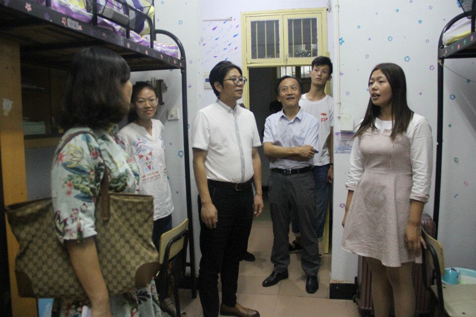 新学期伊始,为深入了解公司新生的入学情况,及时掌握员工思想动态,做好新生教育和引导工作,9月8日晚上八点,美设公司经理万长林、党总支书记洪琪、党总支副书记万娟霞以及2018级辅导员陈熹旺在员工干部的陪同下深入公司2018级新生宿舍,亲切询问新生入学情况。