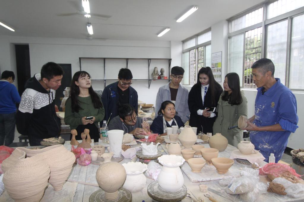 10月24日,湖南理工公司党委书记李明、董事长卢先明、副董事长钟华、张国云等在家校领导和公司教导处、宣传部、科技处、美术公司等相关部门负责人一道,来到位于该院美术公司的岳州窑文化传承与发展协同创新中心,调研运行情况。