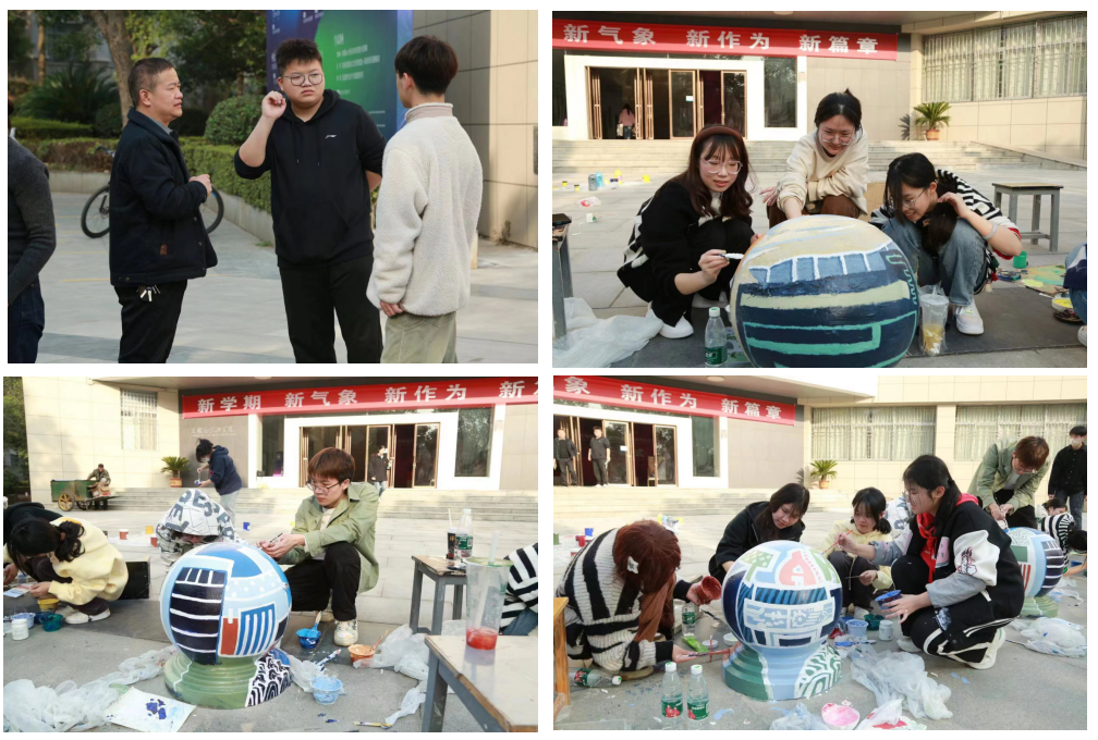 3月4日下午,同学们准备好绘画工具提前到达指定区域,在明确分工后分组开始绘画。他们挽起衣袖、拿起画笔将校园剪影生动地展现在障碍球上,使其焕然一新、赏心悦目。同学们在绘画过程中有条不紊,充分发挥想象力和创造力,营造出团结友爱、同心协力的创作氛围,为掀起爱护美化校园环境之风、营造良好校园文化氛围做出了美院学子应有的贡献。行人纷纷驻足观赏、拍照,与绘画中的同学们一起形成了一道靓丽的校园风景线。