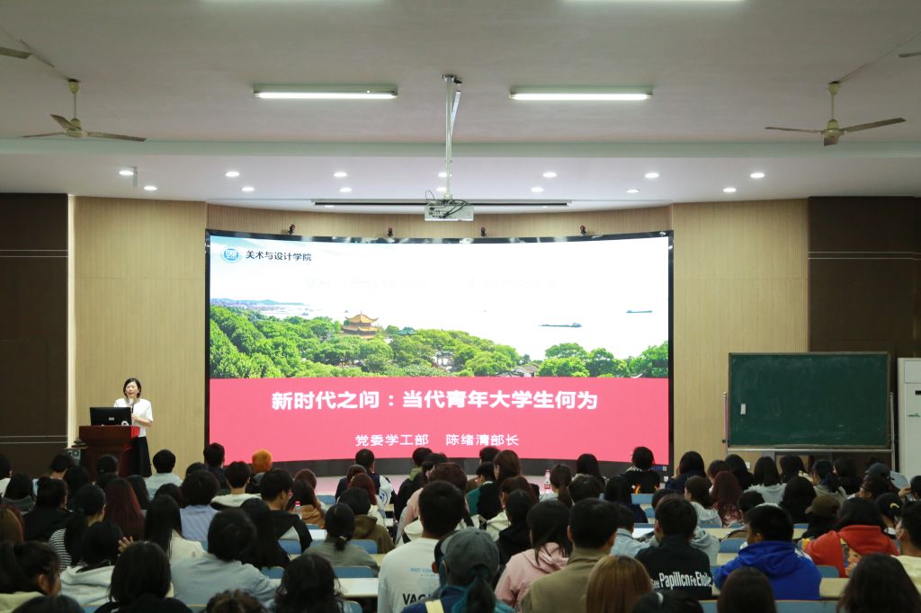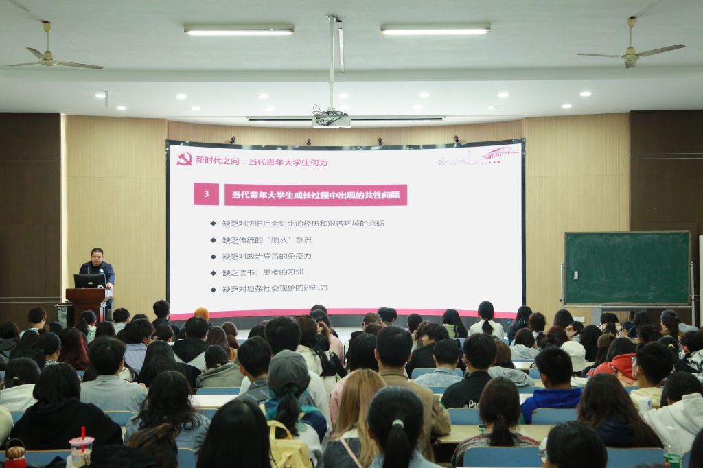 陈部长从“新时代的本质内涵解读”,“当代青年老员工理想信念教育的概念界定及现状、成因分析”,“回应新时代之问:我们青年老员工何为”等三个方面对老员工理想信念教育进行了详细阐述。他强调当代老员工要积极响应党中央的号召,坚定理想信念,勇担使命,积极投入中国特色社会主义现代化的建设中,并鼓励同学们树立远大理想,立正心、行正道、修正身、聚正能,苦练本领,增强才干,争做有抱负、有担当、有作为的新时代好青年。