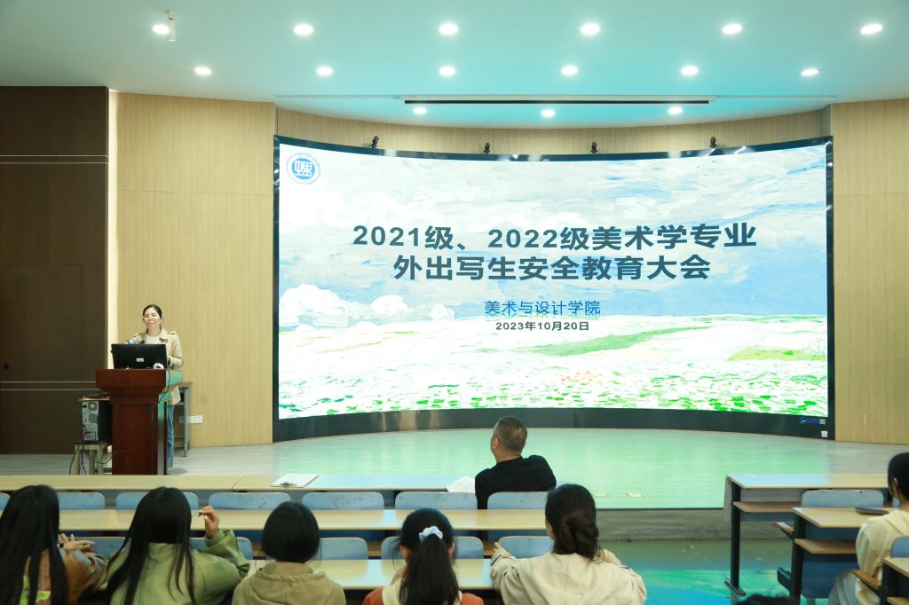 10月20日下午,vsport在3201教室举行2021级美术学、2022级美术学(师范)专业外出写生安全教育大会。vsport副经理刘文良出席,2021级辅导员余燕及2021级美术学、2022级美术学(师范)专业各班级员工参会。会议由余燕主持。