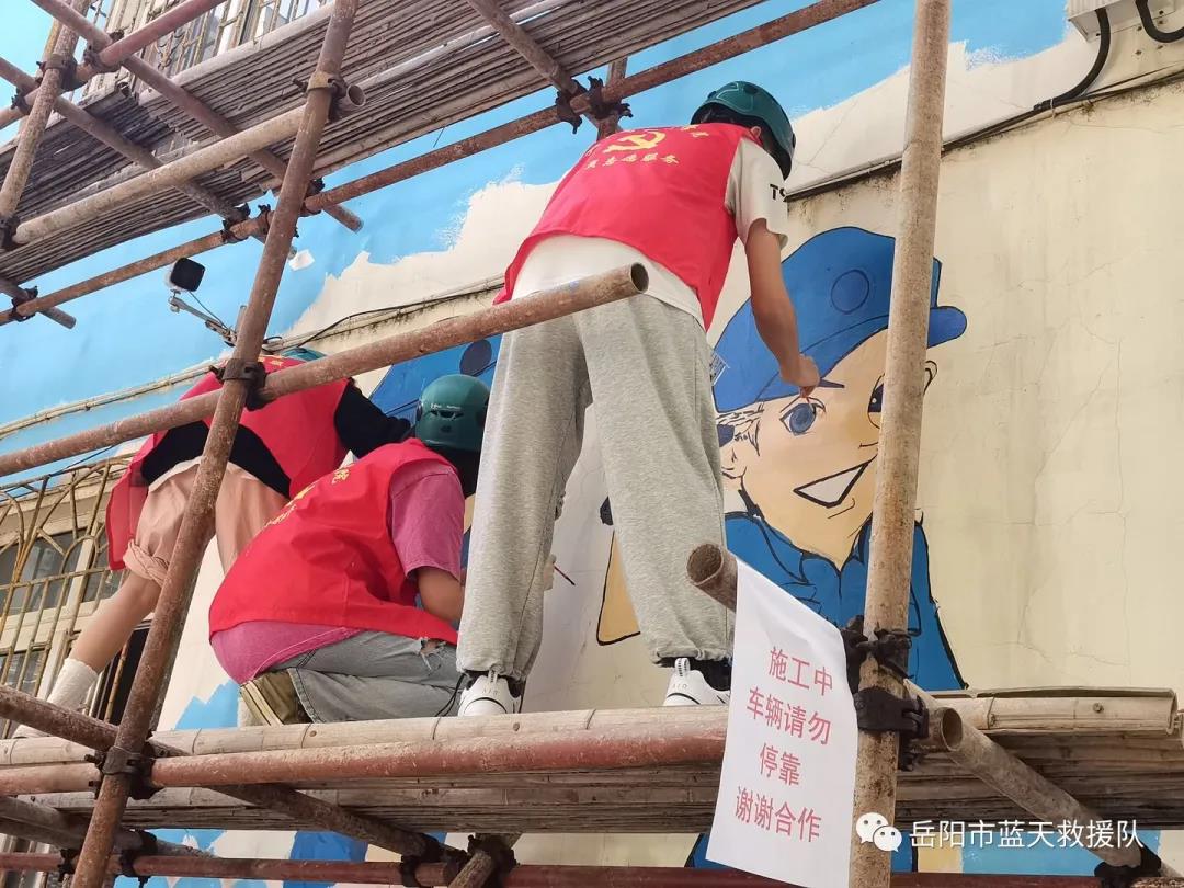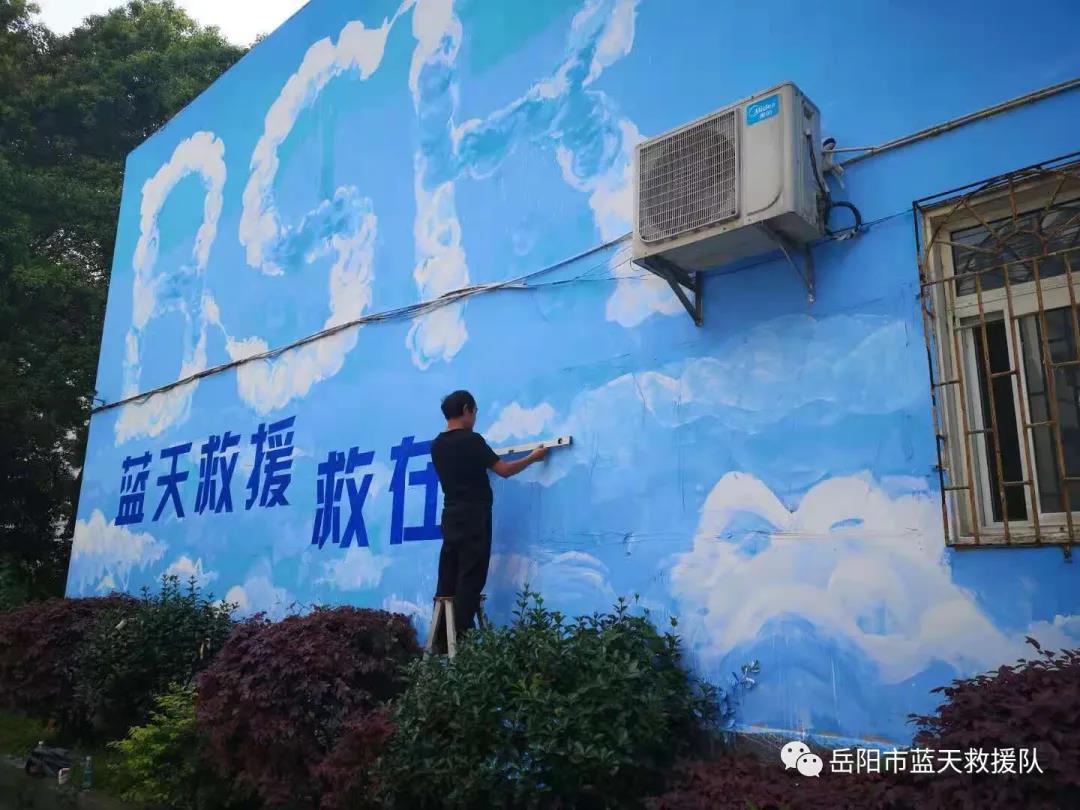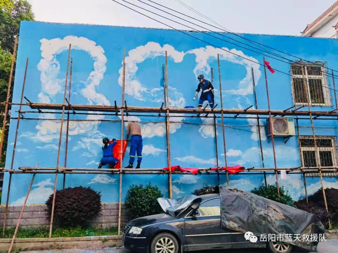 让青春见证美好的蓝天,让青春绽放最美的光彩!近日,岳阳市蓝天救援队队部迎来了一群老员工志愿者——20多名“画家”带着画笔,在和队员们经过辛苦劳作后,共同为队部大楼画上了漂亮的墙体彩绘图案,绘制完成了岳阳蓝天首面公益彩绘墙。
