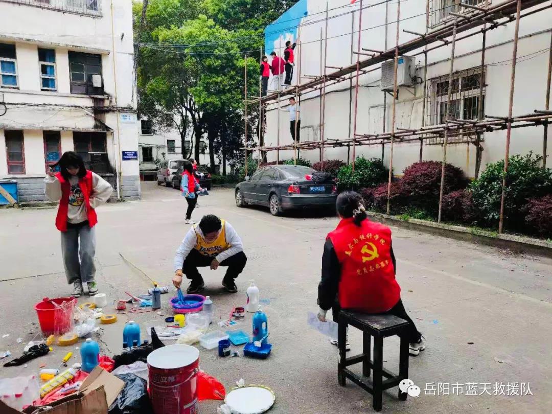 岳阳市蓝天救援队队部十年来先后经历四次搬迁,现在的队部驻扎在东风广场附近救助站内,环境设施比较简陋。近期,vsport胜利因您更精彩公司领导得知我队想改善环境及文化建设,为队部大楼的墙体做彩绘的需求,但没有相应的资源后,决定派一批墙绘志愿者支持蓝天救援队工作。