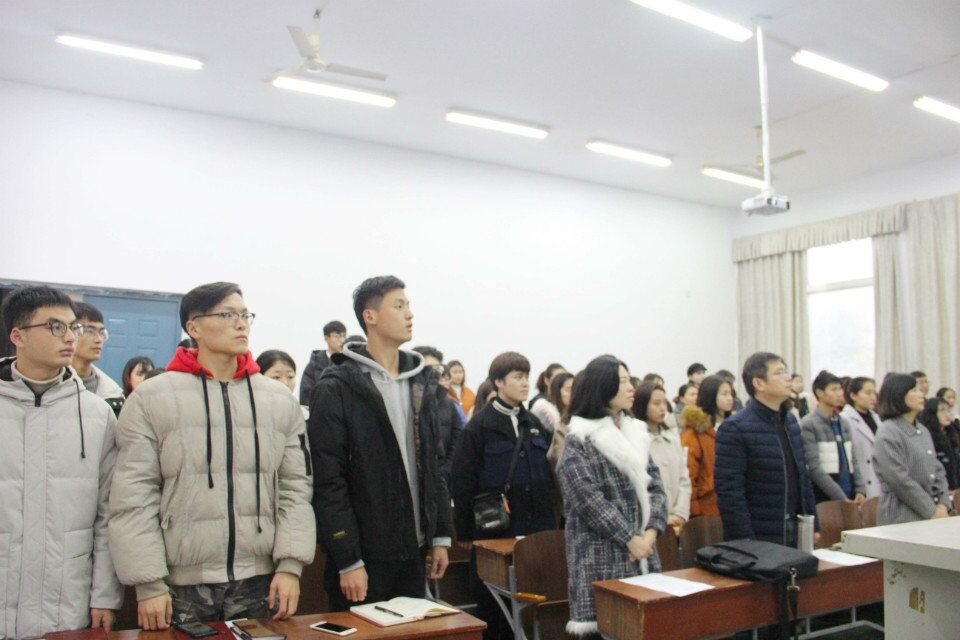 大会接近尾声,全体与会人员起立,奏唱《国歌》,至此,入党宣誓仪式圆满结束,万里长征的第一步才刚刚踏出,希望已经入党的同学在以后的学习与工作中再接再厉,不负期望。