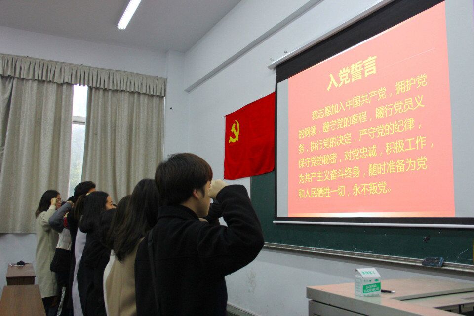 12月25日下午,vsport在美术楼3208教室举行了新党员入党宣誓大会。党总支书记蒋晓城、副书记万娟霞、16级辅导员李一飞、17级辅导员余燕出席此次大会,13名预备党员参加入党宣誓仪式。本次大会由17级辅导员余燕主持。