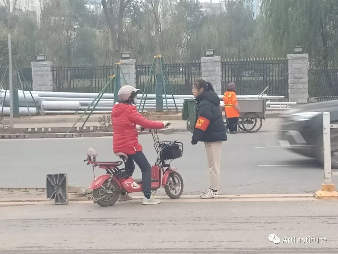 在校南大门外,经常有电动车,摩托车横穿马路现象。身为志愿者,有义务提醒、劝导骑车人员不可以横穿马路。志愿者对其危险行为进行礼貌劝说,作为一个合格的市民,我们要对自己安全负责,为自己行为负责,应积极响应号召,文明先行。