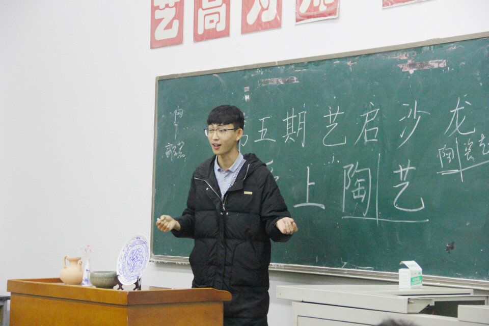 就主题“爱上陶艺”而言,何泽江从辩论的角度阐述了“爱比喜欢的程度更深。”活动中,何泽江向同学们提出问题“为什么中国是陶瓷之都?”随后,他分别从价格和历史演变两个方面向同学们进行了解释。