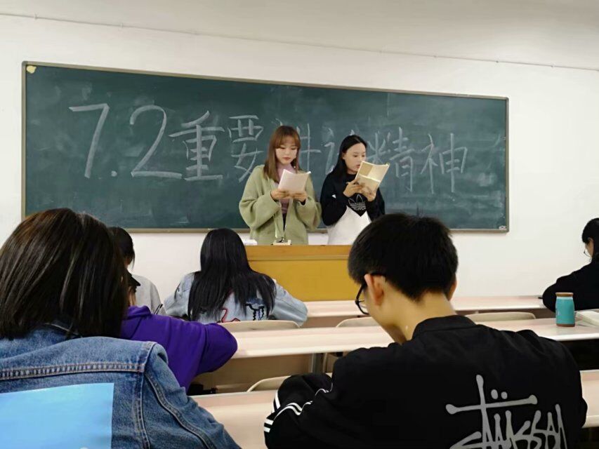 在团课的提问环节中同学们积极举手,在团支书宣讲之后,同学们对“7.2”重要讲话精神展开热烈讨论,在各抒己见中加深理解。