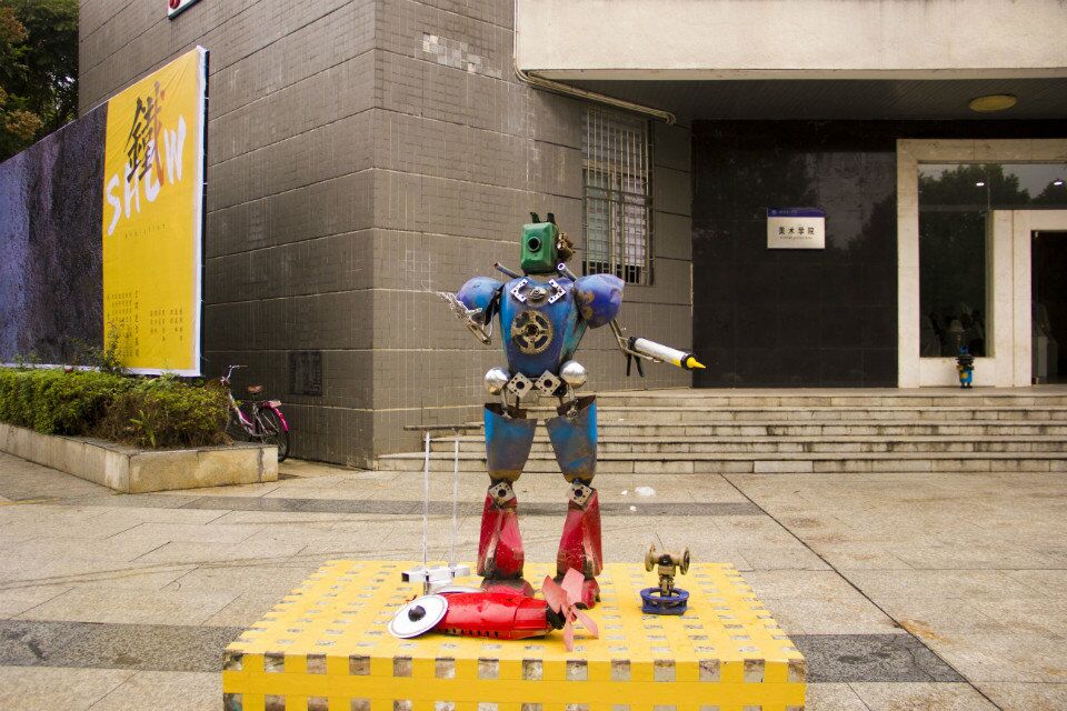 2018年10月15日上午,美设公司17级视传班全体同学与环设1、3BF于美术楼大厅及三楼展览厅联合举办了空间造型设计“铁Show”展。