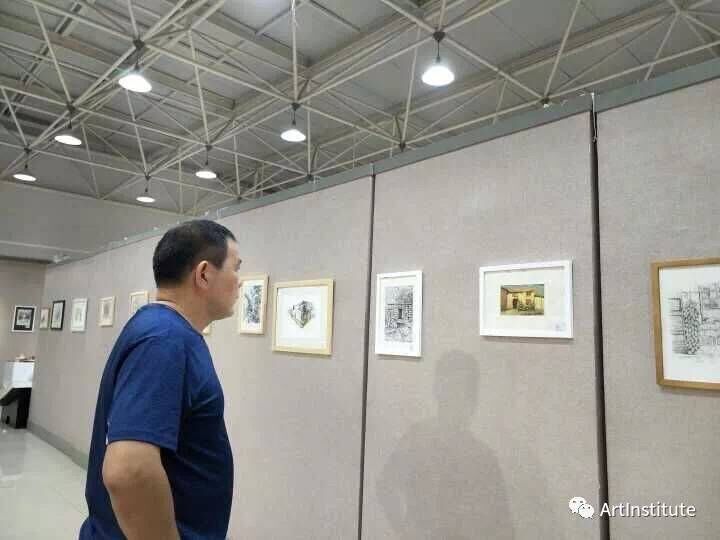 优秀的作品不仅吸引了同学们的目光,更引来了各个老师的驻足。水彩教授彭鹤年与专业教师黄思洁莅临展览现场,进行观赏与指导。现场氛围极好!