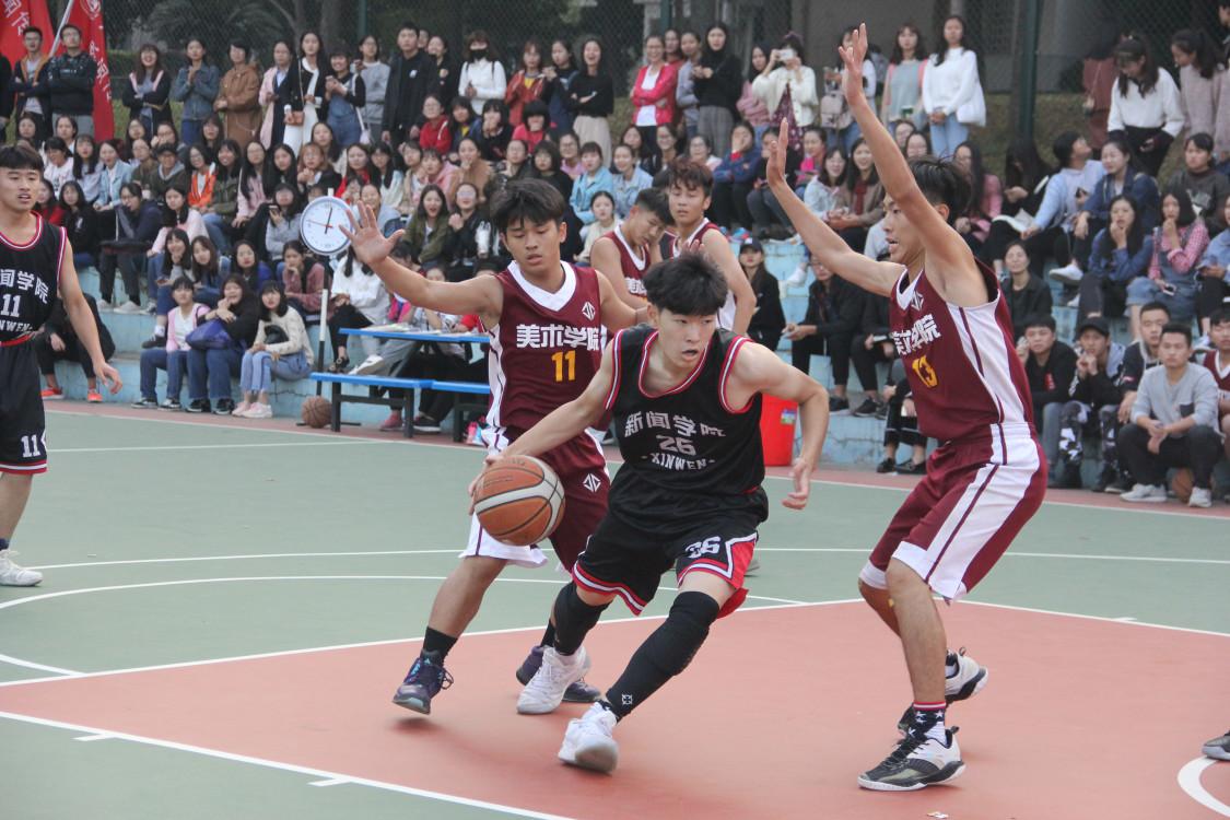“我们不后退、我们不退缩、我们不逃跑、我们坚持,最后征服对手……”10月24日,下午4:30,新生篮球赛之美术公司vs新闻公司的争5、6名半决赛于大俱篮球场如期拉开战幕。